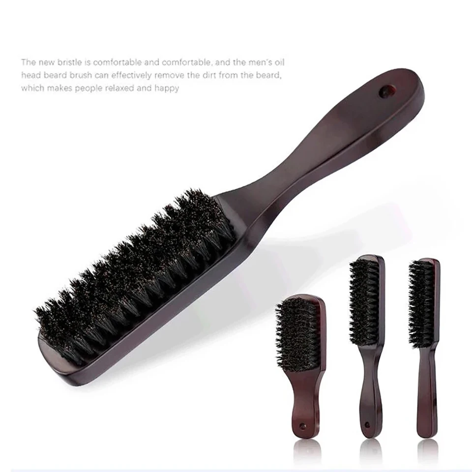 Escova de barba masculina com cabo de madeira, cerdas de javali, escova de limpeza, cabeleireiro, barbeiro antiestático, pente de estilo de cabelo, ferramentas de barbear