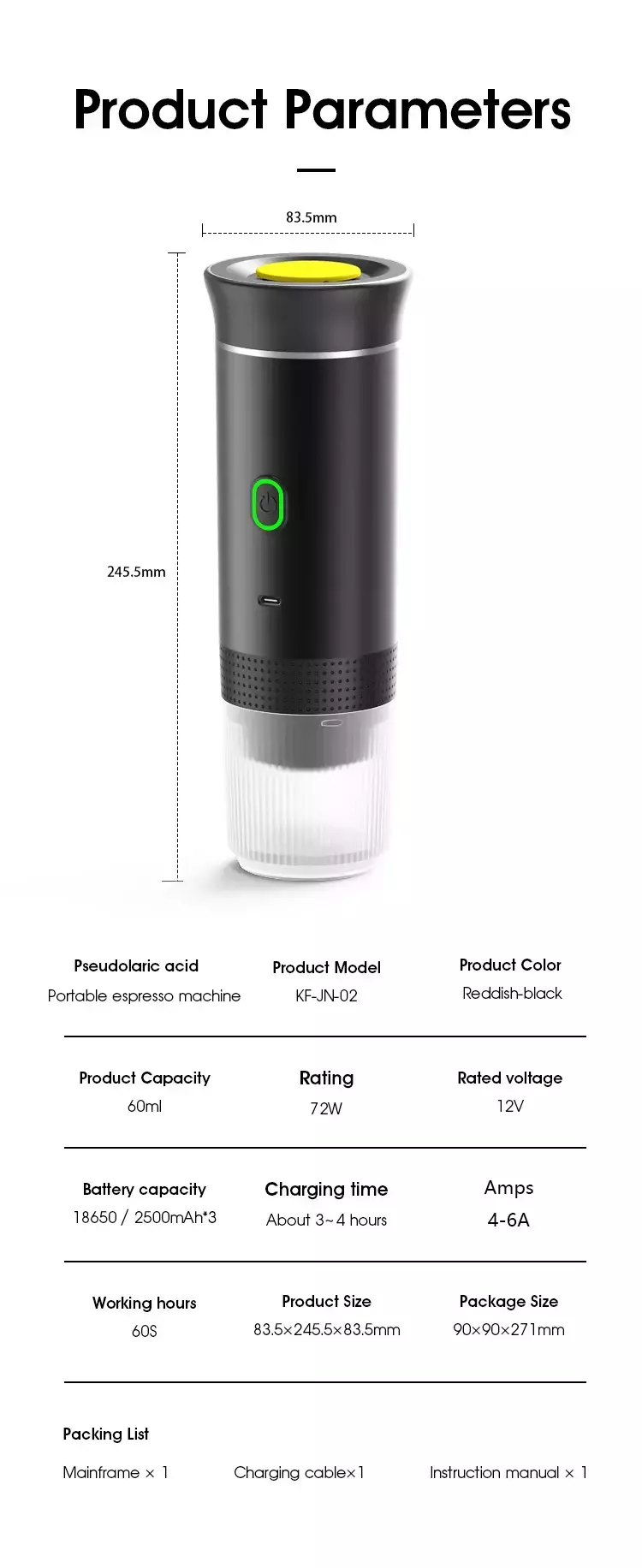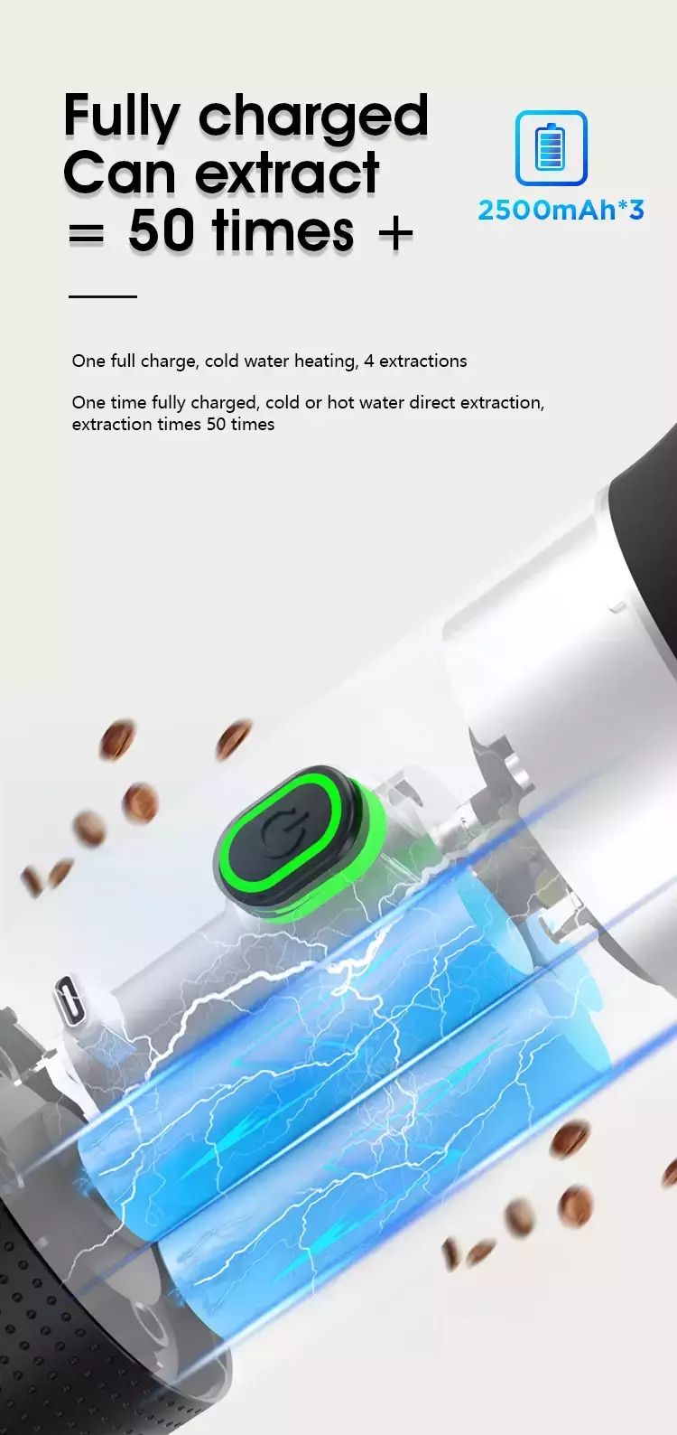 ?Carregamento conveniente?A máquina de café expresso portátil pode ser carregada em qualquer lugar, carregamento portátil, equipada com métodos de carregamento de cabo USB tipo C, suporta carregamento durante o uso, adequada para viagens, camping, direção, casa e escritório.